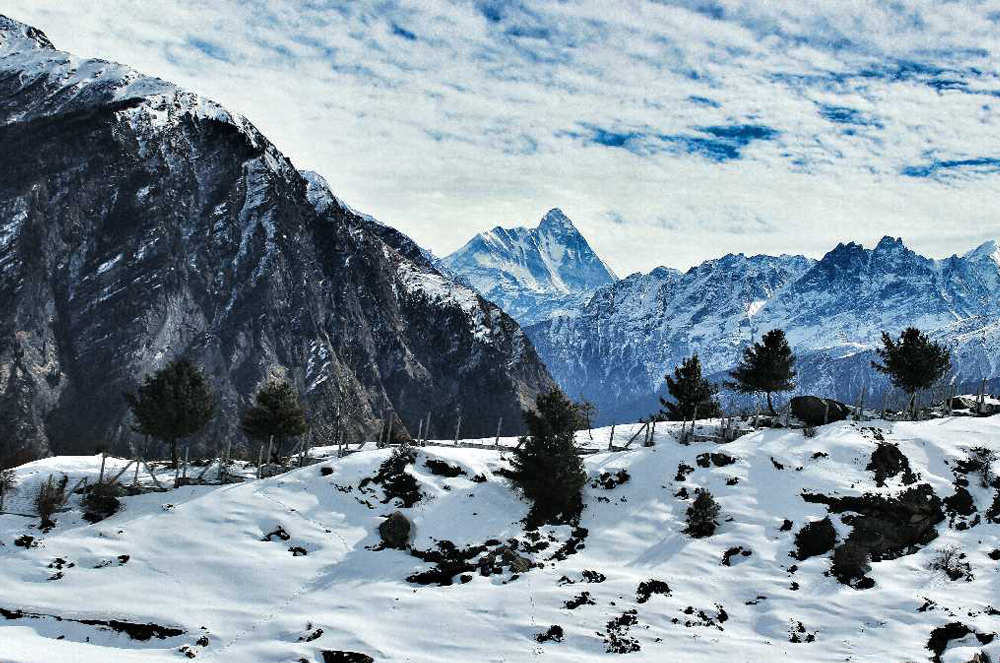 In my head, I was only thinking, “everything is so beautiful here!' The snow wrapped on the mountains standing straight is looking as if the white sheet has been muffled to them. The light and dark green leaves of the trees are spreading their own different color. Heaven is at its ultimate best beauty and it appears as if the rivers of heaven have enhanced the beauty of this place to many levels.